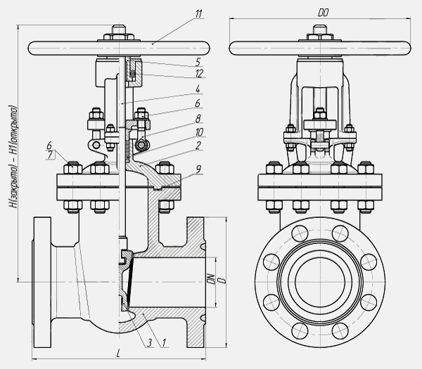 Габаритные размеры задвижек 30лс964нж